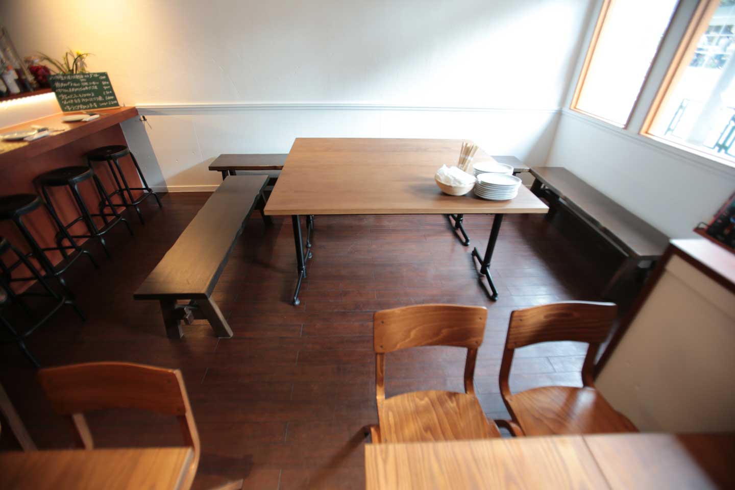 両サイドに白い壁がひろがる店内。写真や絵のギャラリーとしてご活用いただけます。左右に6点ずつ。その他の場所に、3点ほど。 計15点は展示可能なスペースです。